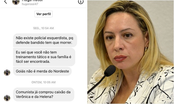Em outra, a pessoa afirma que a deputada “não tem treinamento tático” e que a família dela “é fácil de ser encontrada”. “Comunista já comprou caixão da Verônica e da Helena?”, pergunta o perfil falso, em referência às duas filhas da delegada.