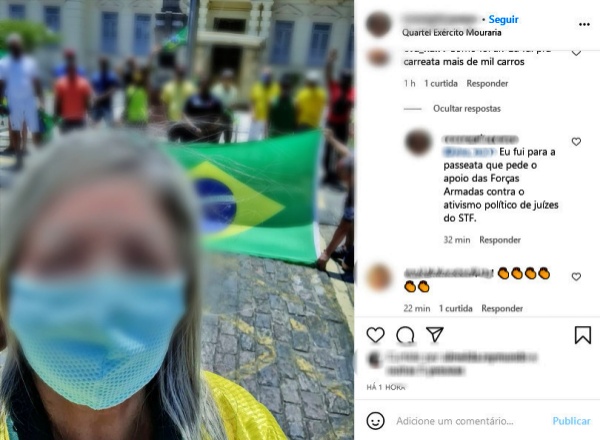 “Comecei a fotografar um grupo pequeno de pessoas que estavam pedindo intervenção militar. Logo depois fui abordada por um dos manifestantes, já me chamando de vagabunda gratuitamente. Quando vi eu estava cercada. A maioria das pessoas estavam sem máscara. Prontamente peguei o celular e comecei a filmar, parando de fotografar. Me senti bastante acuada, e falei que não estava agredindo ninguém, que eu só estava trabalhando e saí. Uns dois integrantes vieram e me pediram desculpa e que o “movimento” não era isso“, disse Paula à reportagem.