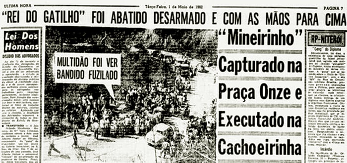 Estamos no dia 1º de maio de 1962. A polícia militar do Estado da Guanabara acaba de abater com 13 tiros José Rosa de Miranda, 28 anos, de alcunha “Mineirinho”. O Serviço de Diligências Especiais da Secretaria de Segurança Pública está em festa. A caçada acabou. O caso estampou as capas dos jornais pelo país afora, com muito sensacionalismo, fotos do cadáver, comemorações incontidas das autoridades que se responsabilizam pelo feito – Carlos Lacerda, governador da Guanabara, teria chefiado pessoalmente algumas atividades.