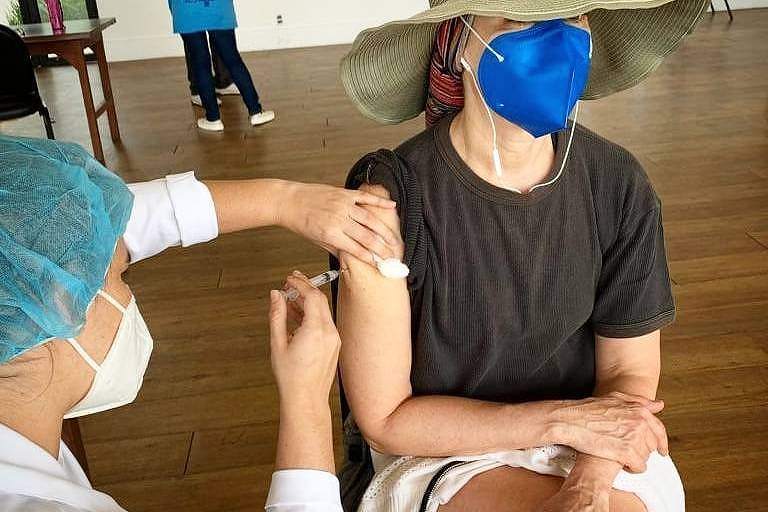 Fernanda Torres recebe a vacina da AstraZeneca após rejeitar o imunizante em um primeiro momento