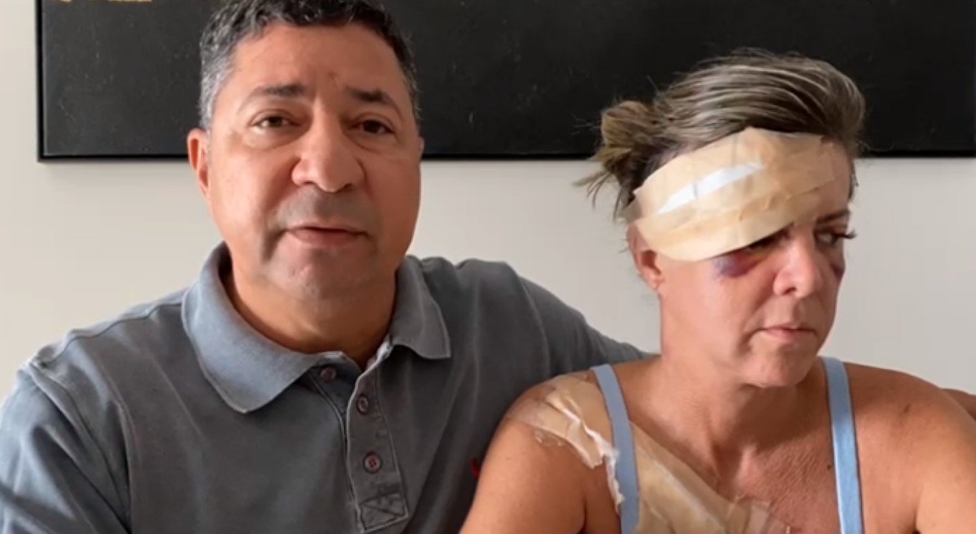 Mãe, avó e empresária, Kátia é uma mulher muito ativa, trabalha na empresa da família e em casa, mas está muito abatida e nervosa. “Qualquer coisinha tem um susto. Não estamos bem. (…) Minha esposa é uma mulher bonita, uma mulher vaidosa. É triste se ver na situação que se encontra hoje, que não sabemos quais serão as sequelas”, conta com voz embargada.