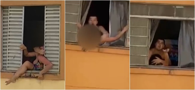 Desesperada, grávida tenta se jogar de prédio para escapar das agressões do marido. Vizinhos filmaram a violência e a tentativa de fuga. Vítima diz que homem iria matá-la se vizinha não tivesse batido na porta