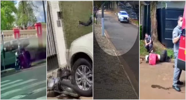 O motoboy chega a atingir o homem com o capacete e sai do local, mas uma perseguição é iniciada. O motorista da Pajero segue o entregador e, depois, joga o carro em cima dele.