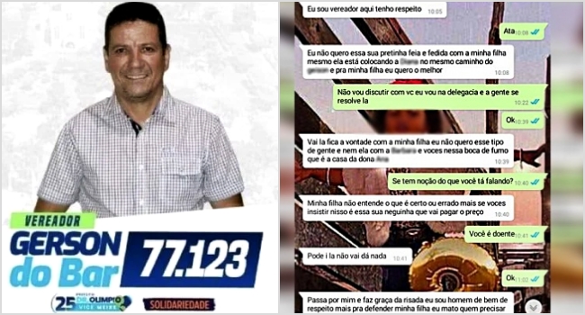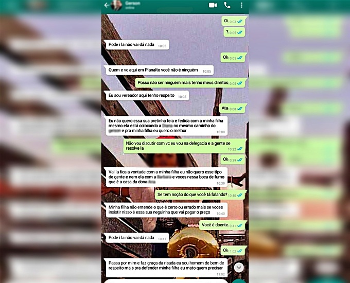 Gercimar negou conversar com Carolaine e que tenha enviado as mensagens ofensivas. Ele disse também que não fez nenhuma ameaça. “Trabalho com crianças, jamais, nunca na vida, eu teria coragem de ofender um adulto dessa forma, que dirá uma criança”, conta o vereador.