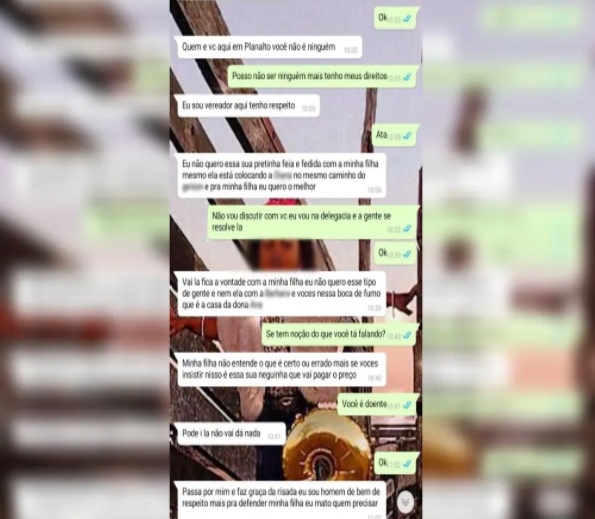 No print divulgado da conversa pelo WhatsApp, é possível ver os insultos contra a menina: “Eu não quero essa sua pretinha feia e fedida com a minha filha“.
