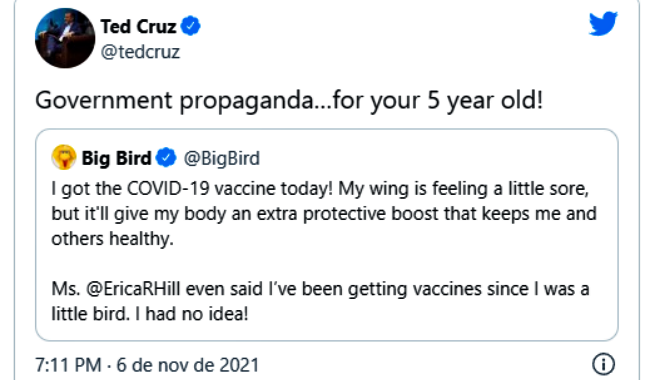 A postagem é na verdade uma campanha de conscientização para a vacinação após os Estados Unidos aprovarem o imunizante da Pfizer/BioNTech para crianças a partir dos 5 anos. O personagem Garibaldo, atualmente interpretado pelo ator Matt Vogel, representa uma criança de 6 anos e, portanto, apta a se vacinar contra a covid-19.