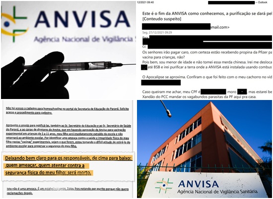 Os funcionários da Anvisa já receberam oficialmente 176 ameaças após recomendarem a vacinação contra a Covid-19 em crianças de 5 a 11 anos. Eles foram expostos nas redes sociais pelo presidente Jair Bolsonaro (PL) e seus apoiadores, que rejeitam a imunização. Bolsonaro pediu publicamente a lista com os nomes dos técnicos que tomaram a decisão em favor da vacinação infantil.