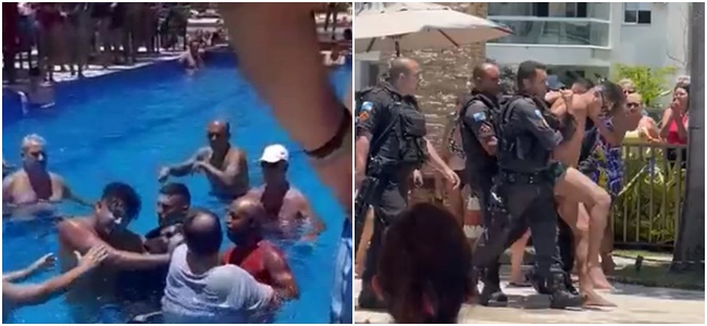 Em vídeos (assista abaixo) que circulam nas redes sociais, um policial militar aparece dentro da piscina segurando o parlamentar para tentar contê-lo, enquanto ele diz que não fez nada e fala palavrões. Em seguida, ele é retirado da piscina com a ajuda de mais um PM e é levado à força pra fora do local. Os moradores aplaudem a ação da polícia.