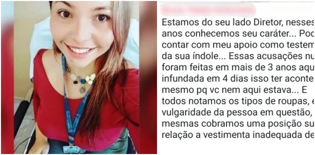 A profissional também relata que uma colega de trabalho chegou a concordar, em mensagem, que as roupas dela eram inapropriadas. “Eu sempre me vesti normalmente, super bem, não tinha nada demais, tenho fotos para comprovar. Depois de todo o ocorrido, relatei tudo ao prefeito, mas não tive resposta. Eu não teria porque mentir sobre isso e me expor dessa forma, e é muito difícil você ir contra o sistema”.