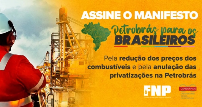 O Observatório Social do Petróleo (OSP) e a Federação Nacional dos Petroleiros (FNP) lançam, nesta segunda-feira (18), o Manifesto “Petrobrás para os brasileiros”, que elenca 10 pontos fundamentais para a retomada do crescimento do país. O objetivo é ampliar o debate nacional sobre a Petrobrás, buscando diálogo junto à população e, principalmente, com os candidatos à presidência do país.