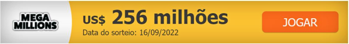 Nesta semana a loteria Mega Millions dos Estados Unidos sorteará um prêmio de 256 milhões de dólares, mais de R$ 1,3 bilhão, na noite de sexta-feira, 16 de setembro. Agora é possível jogar na Mega Millions com bilhetes de loteria oficiais, do Brasil, sem sair de casa através de serviços on-line como a TheLotter.
