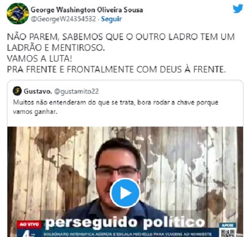 O bolsonarista George Washington de Oliveira Sousa, 54 anos, que confessou ter montado um artefato explosivo numa área de acesso ao Aeroporto Internacional de Brasília, criou um abril deste ano uma conta no Twitter.