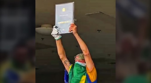 Em seu depoimento, o bolsonarista relatou que não tinha intenção de participar de atos violentos, mesmo usando a bandeira brasileira para esconder seu rosto e uma luva para proteger as mãos.