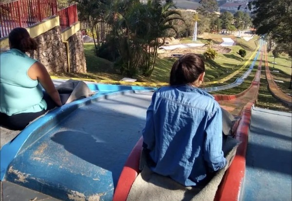 “Ela passou pela lombadinha do tobogã, só que a velocidade estava muito alta. Eles voaram e bateram em uma estrutura de ferro que tem entre o tobogã e o teleférico. Foi um barulho horrível, uma cena horrorosa”, relata.