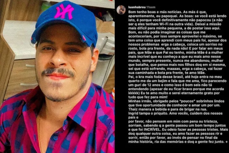 Durante a conversa, enquanto a irmã tentava desviar do assunto, Luan insistia em um pedido. “Meu irmão falou: ‘quando o maninho for, quero que você pegue uma foto e poste o texto na minha rede social’. Nós sabíamos da situação dele, mas não acreditávamos que ele morreria. Ele me contou da carta no início do tratamento”.
