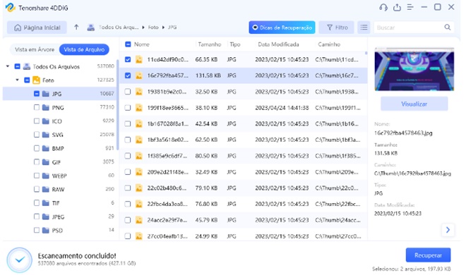 ↘ Recupera mais de 2000 tipos de arquivos, incluindo fotos, vídeos, documentos, áudios, etc.