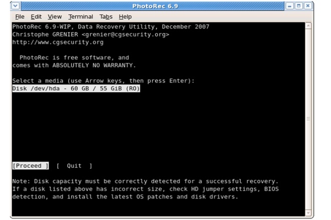 O PhotoRec é um software gratuito e de código aberto para recuperação de arquivos. Ele possui uma interface de linha de comando e pode ajudar na recuperação de vídeos, arquivos de áudio, documentos, texto, arquivos compactados e imagens. É especialmente útil para recuperação relacionada a câmeras digitais, mesmo em casos em que o sistema de destino esteja corrompido ou danificado. É uma ótima opção para usuários profissionais com orçamento limitado.