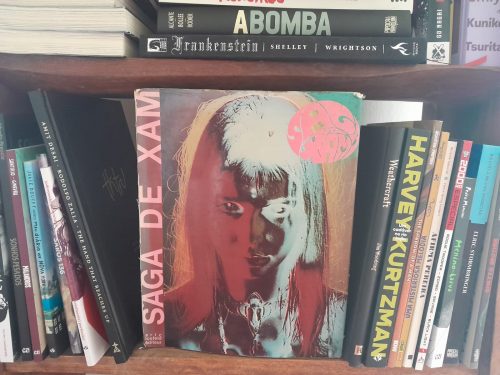 Caminham entre os gibis antigos de modo soturno e abrem ao acaso um e outro folheando o tempo na forma de poeira. Aspiram levemente a manifestação da história. Sabem perfeitamente tudo daquela peça, história e história. Cada gibi é uma queda das torres gêmeas ou o pouso do homem na lua. Se recordam o instante do encontro, o que vestiam ou pensavam no momento exato. São memórias táteis e olfativas. Jamais se perdem.