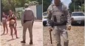 A vítima, depois, foi arrastada até a margem do córrego, carregada e encostada na parede externa de uma casa. A janela da residência é fechada por um PM. Os militares chamam Rafael de ladrão e xingam ele de trouxa. Ele pede desculpas, mas um dos militares não aceita.