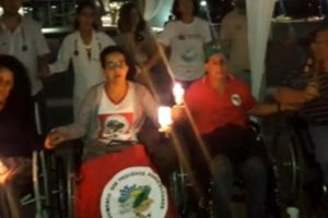 Projeção em prédio evidencia greve da PBio e denuncia privatização da Petrobrás
