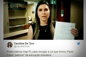 Deputada aluna de Olavo de Carvalho mira a destruição de Paulo Freire