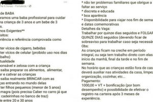 "Preciso de cuidadoras, mas não podem ser negras nem gordas"