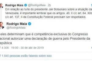 Maia desmente Bolsonaro publicamente sobre “decisão” em guerra na Venezuela
